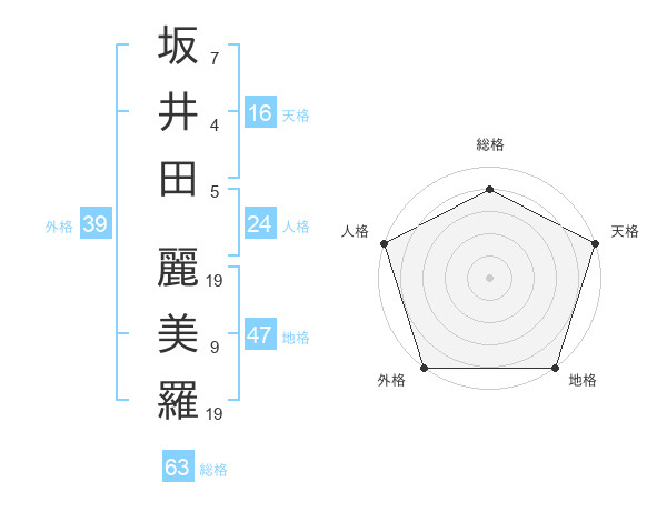 坂井田 麗美羅さんの地格は47画の5点!