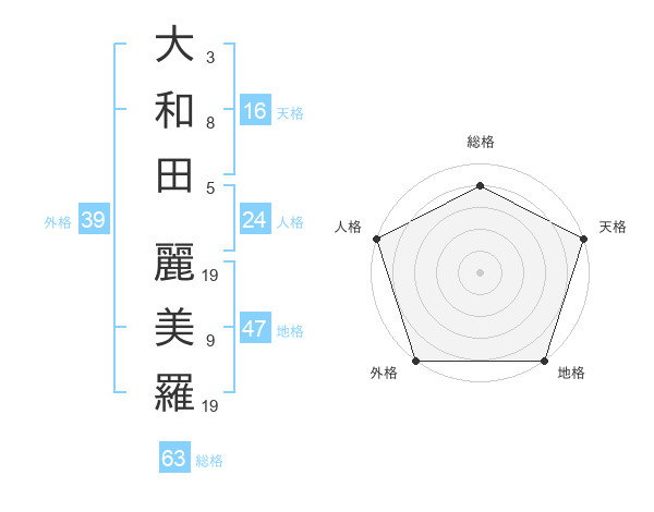 大和田 麗美羅さんを姓名の画数から五運を鑑定