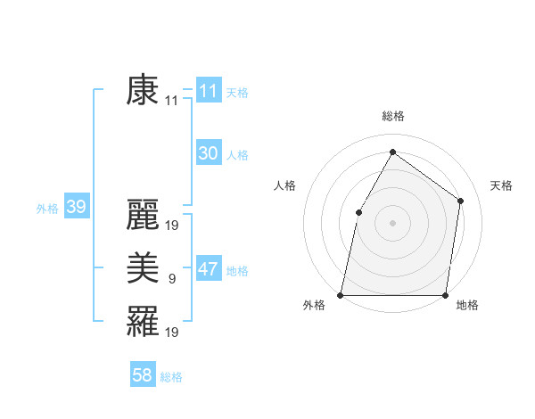 康 麗美羅さんを姓名の画数から五運を鑑定