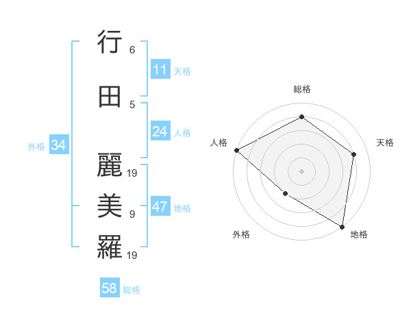 行田 麗美羅さんを姓名の画数から五運を鑑定
