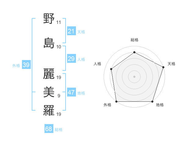 野島 麗美羅さんを姓名の画数から五運を鑑定