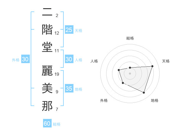 二階堂 麗美那さんの天格は25画の4点!