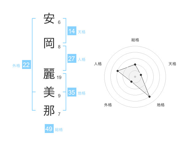 安岡 麗美那さんを姓名の画数から五運を鑑定