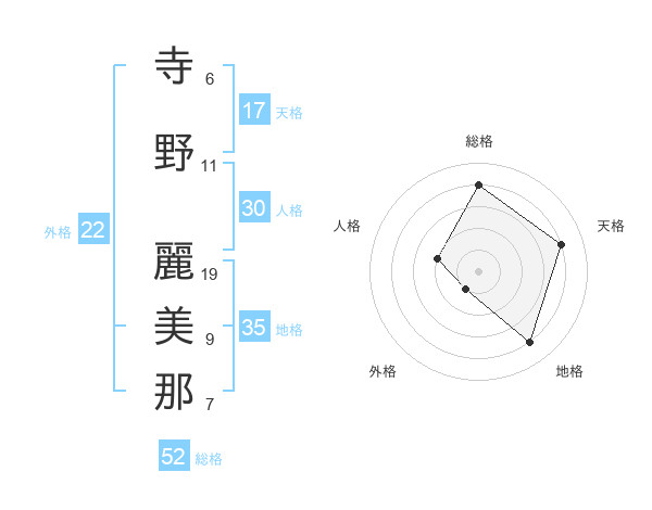 寺野 麗美那さんの天格は17画の4点!