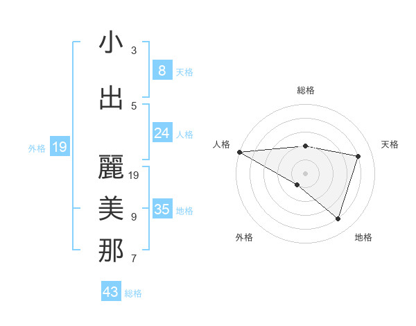 小出 麗美那さんの天格は8画の4点!