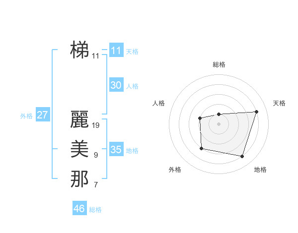 梯 麗美那さんの天格は11画の4点!
