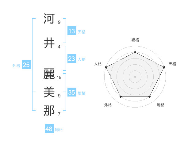 河井 麗美那さんを姓名の画数から五運を鑑定