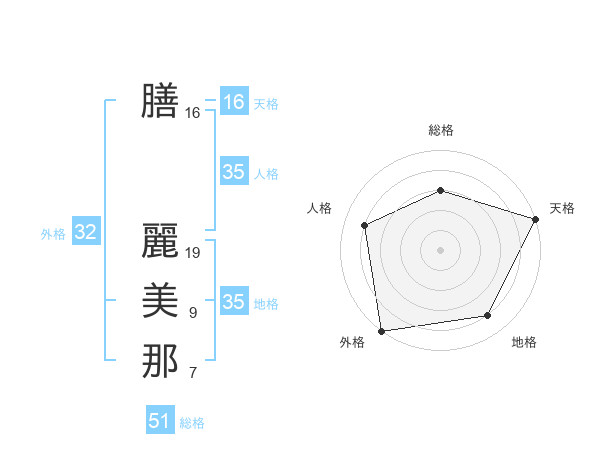 膳 麗美那さんの総格は51画の3点!