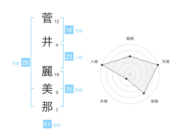 菅井 麗美那さんの総格は51画の3点!