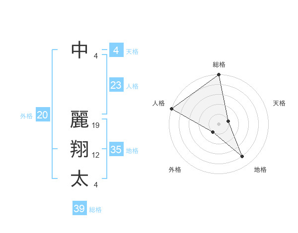 中 麗翔太さんの総格は39画の5点!