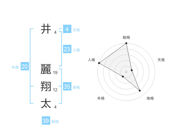 井 麗翔太さんの天格は4画の1点!