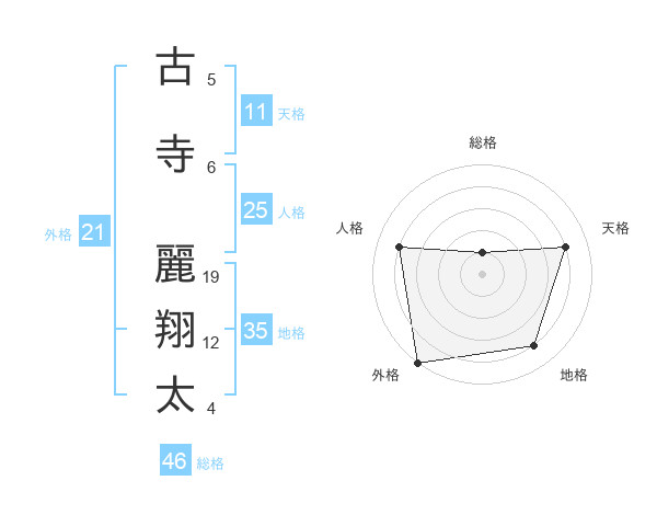 古寺 麗翔太さんを姓名の画数から五運を鑑定