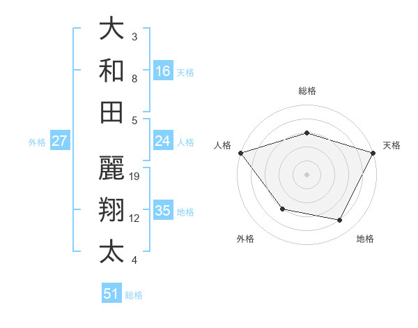 大和田 麗翔太さんを姓名の画数から五運を鑑定