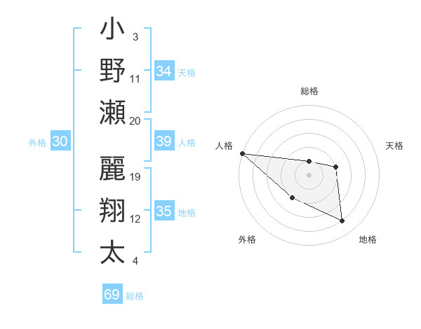 小野瀬 麗翔太さんを姓名の画数から五運を鑑定