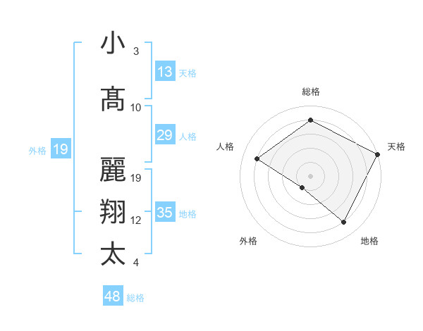 小髙 麗翔太さんを姓名の画数から五運を鑑定