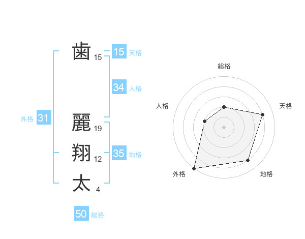 歯 麗翔太さんの総格は50画の2点!