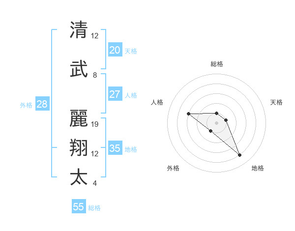 清武 麗翔太さんを姓名の画数から五運を鑑定