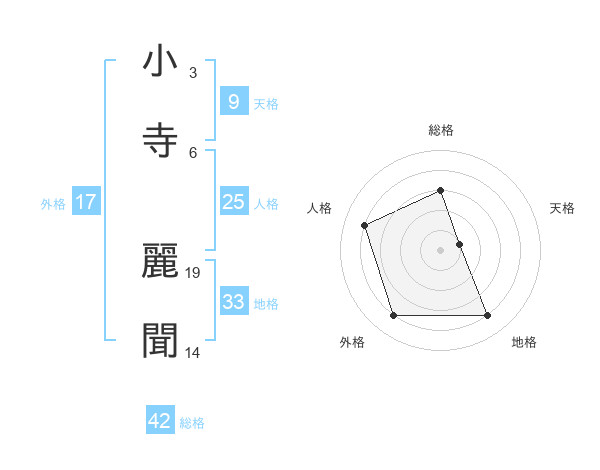 小寺 麗聞さんを姓名の画数から五運を鑑定