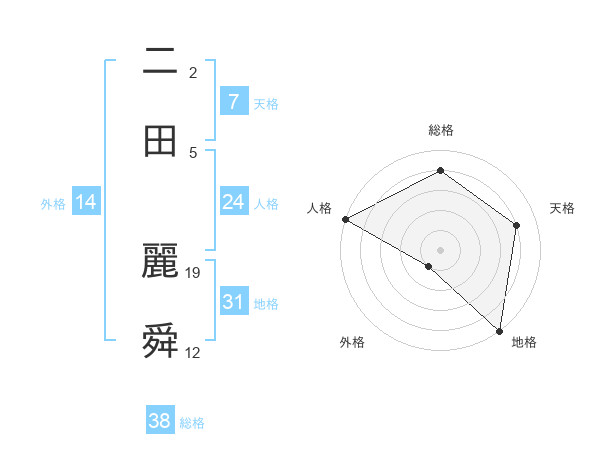 二田 麗舜さんの総格は38画の4点!