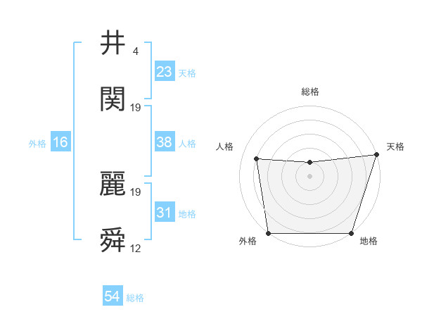 井関 麗舜さんの総格は54画の1点!