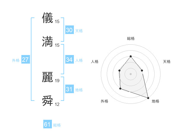 儀満 麗舜さんを姓名の画数から五運を鑑定