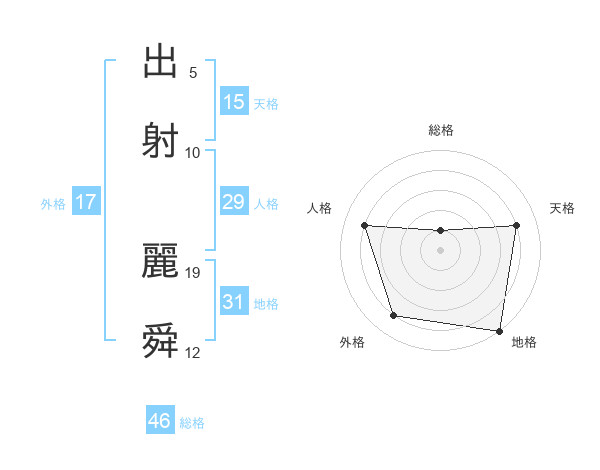 出射 麗舜さんの地格は31画の5点!