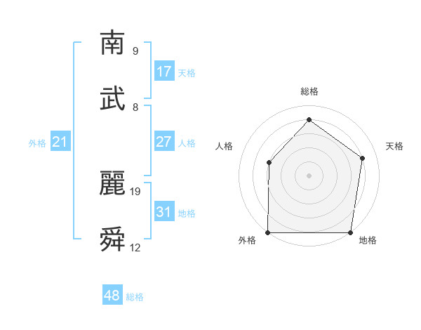 南武 麗舜さんの外格は21画の5点!