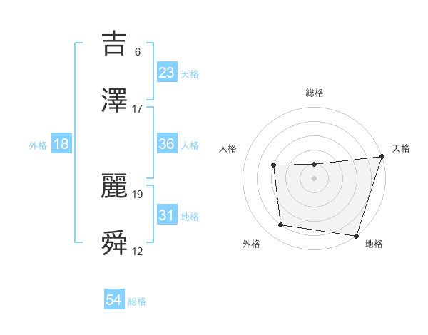 吉澤 麗舜さんの総格は54画の1点!