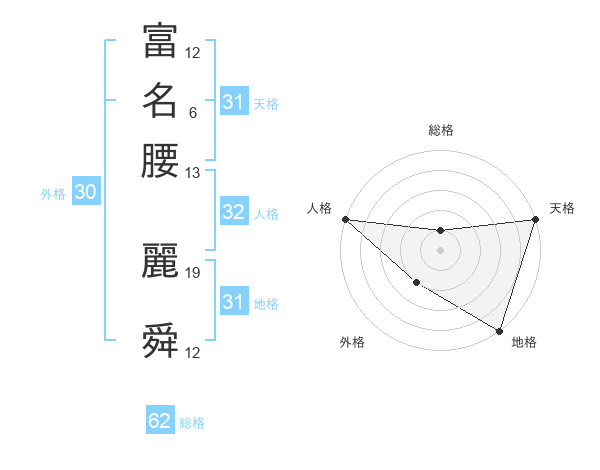 富名腰 麗舜さんの天格は31画の5点!
