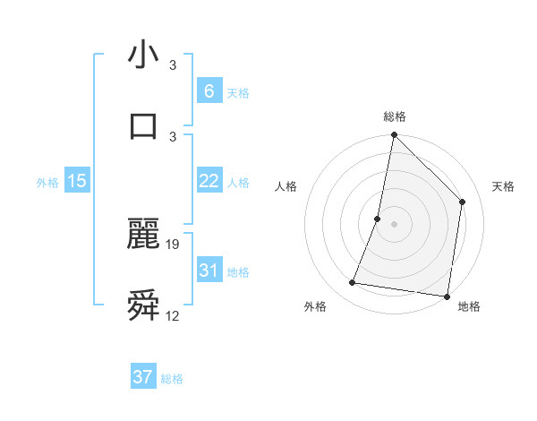 小口 麗舜さんの総格は37画の5点!