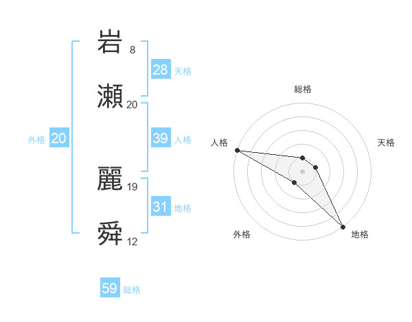 岩瀬 麗舜さんの総格は59画の1点!