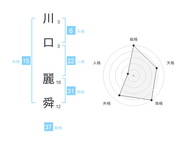 川口 麗舜さんの総格は37画の5点!