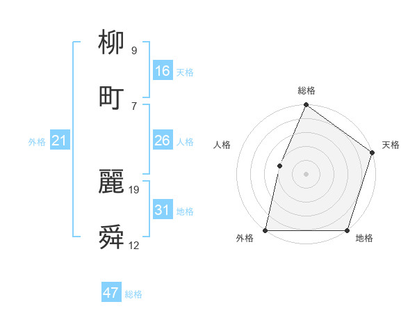 柳町 麗舜さんの総格は47画の5点!
