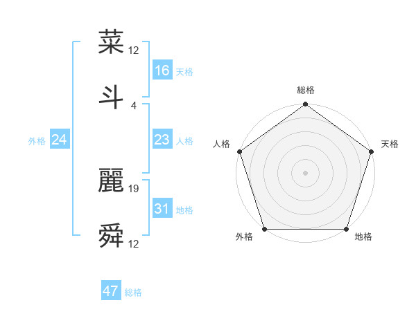 菜斗 麗舜さんを姓名の画数から五運を鑑定