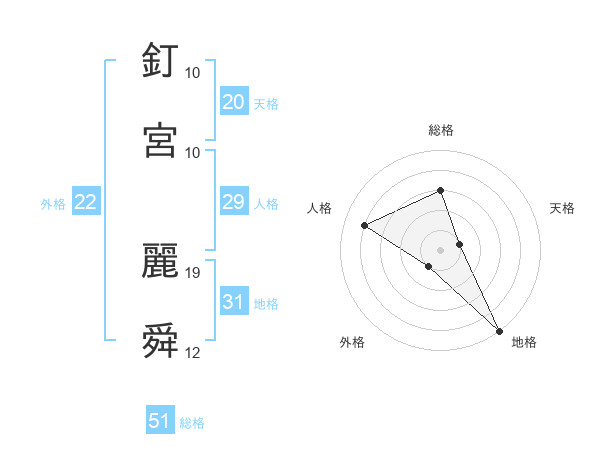 釘宮 麗舜さんの外格は22画の1点!