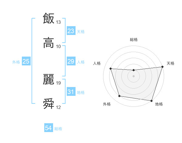 飯高 麗舜さんを姓名の画数から五運を鑑定