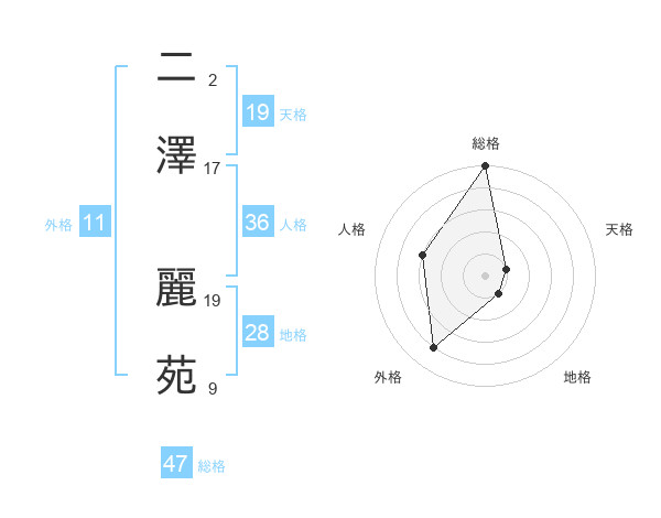 二澤 麗苑さんの総格は47画の5点!