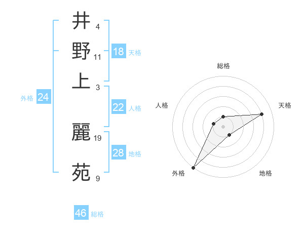 井野上 麗苑さんの天格は18画の4点