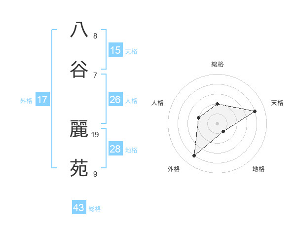 八谷 麗苑さんの総格は43画の2点!