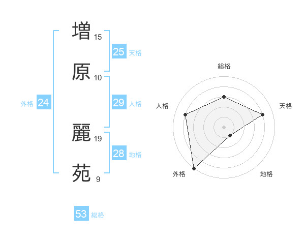 増原 麗苑さんの総格は53画の3点!