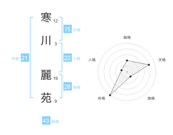 寒川 麗苑さんの外格は21画の5点!
