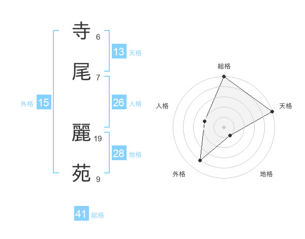寺尾 麗苑さんの総格は41画の5点!