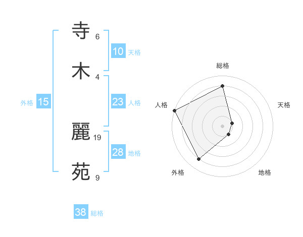 寺木 麗苑さんの総格は38画の4点!