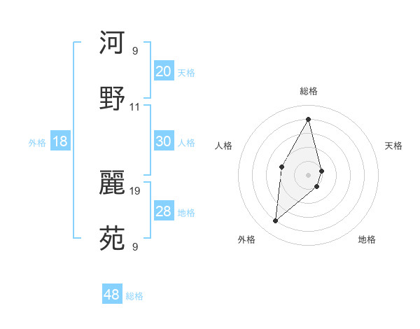 河野 麗苑さんの総格は48画の4点!