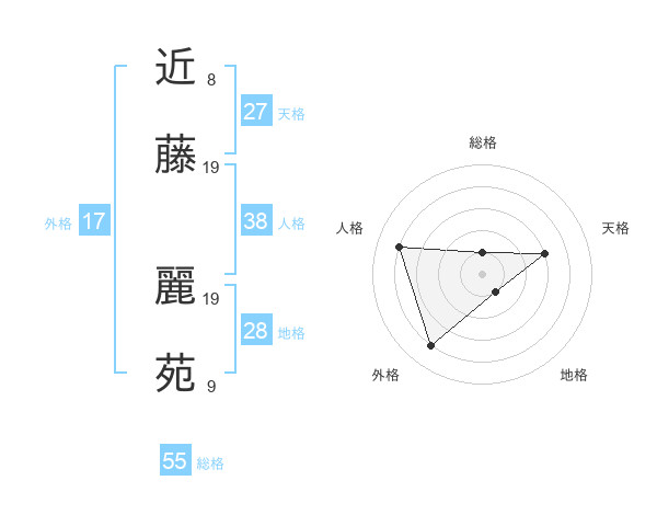 近藤 麗苑さんの総格は55画の1点!