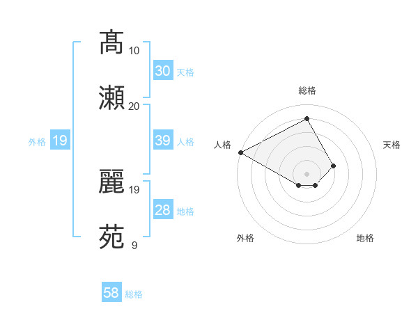 髙瀬 麗苑さんの総格は58画の4点!