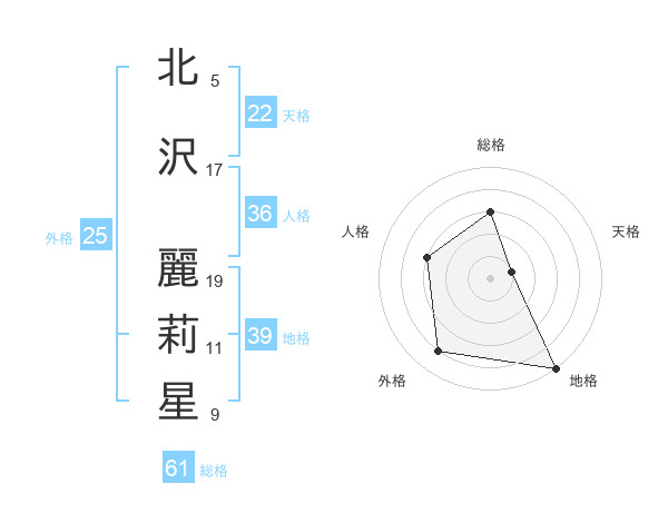 北沢 麗莉星さんを姓名の画数から五運を鑑定