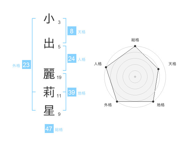 小出 麗莉星さんを姓名の画数から五運を鑑定