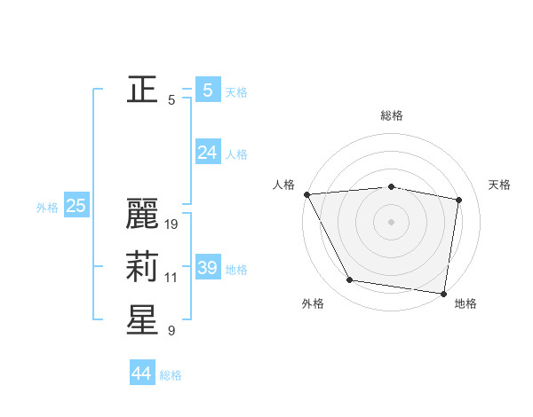 正 麗莉星さんの天格は5画の4点!