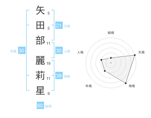 矢田部 麗莉星さんを姓名の画数から五運を鑑定